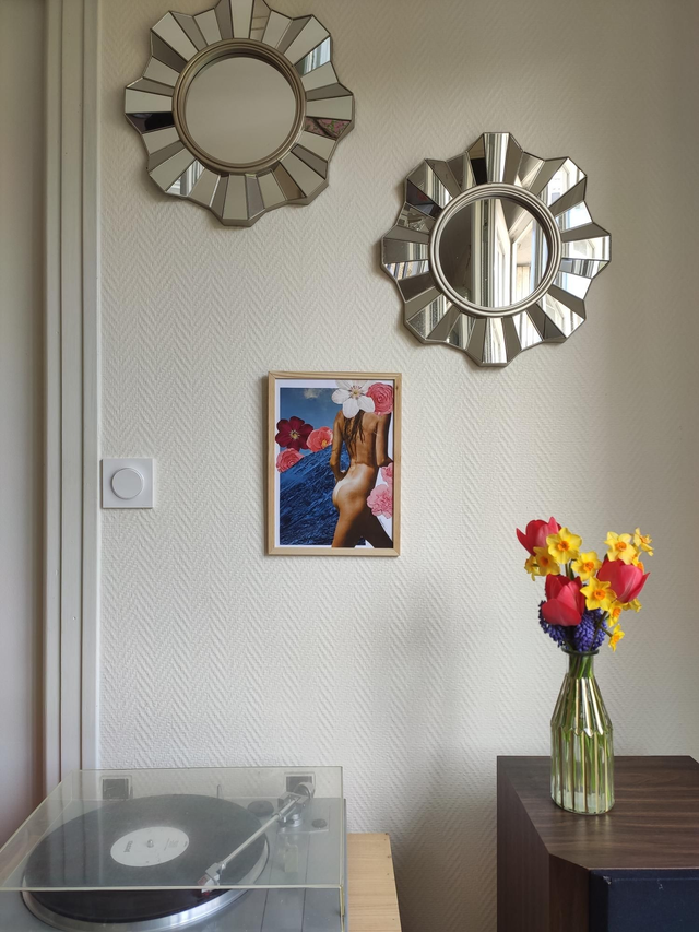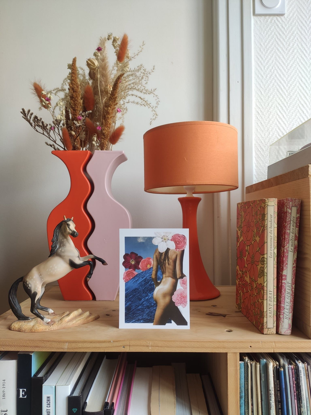 Naked in the mountains, création originale réalisée à la main, combinant motifs floraux et hivernaux, pour apporter une touche colorée unique à votre intérieur.